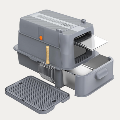 Geen zin in stank, schoonmaak of rondvliegend grit? De Cat Elite Nest Kattenbak houdt het hygiënisch, strak en fris, zonder moeite. Slim ontworpen voor gemak, gemaakt om lang mee te gaan.