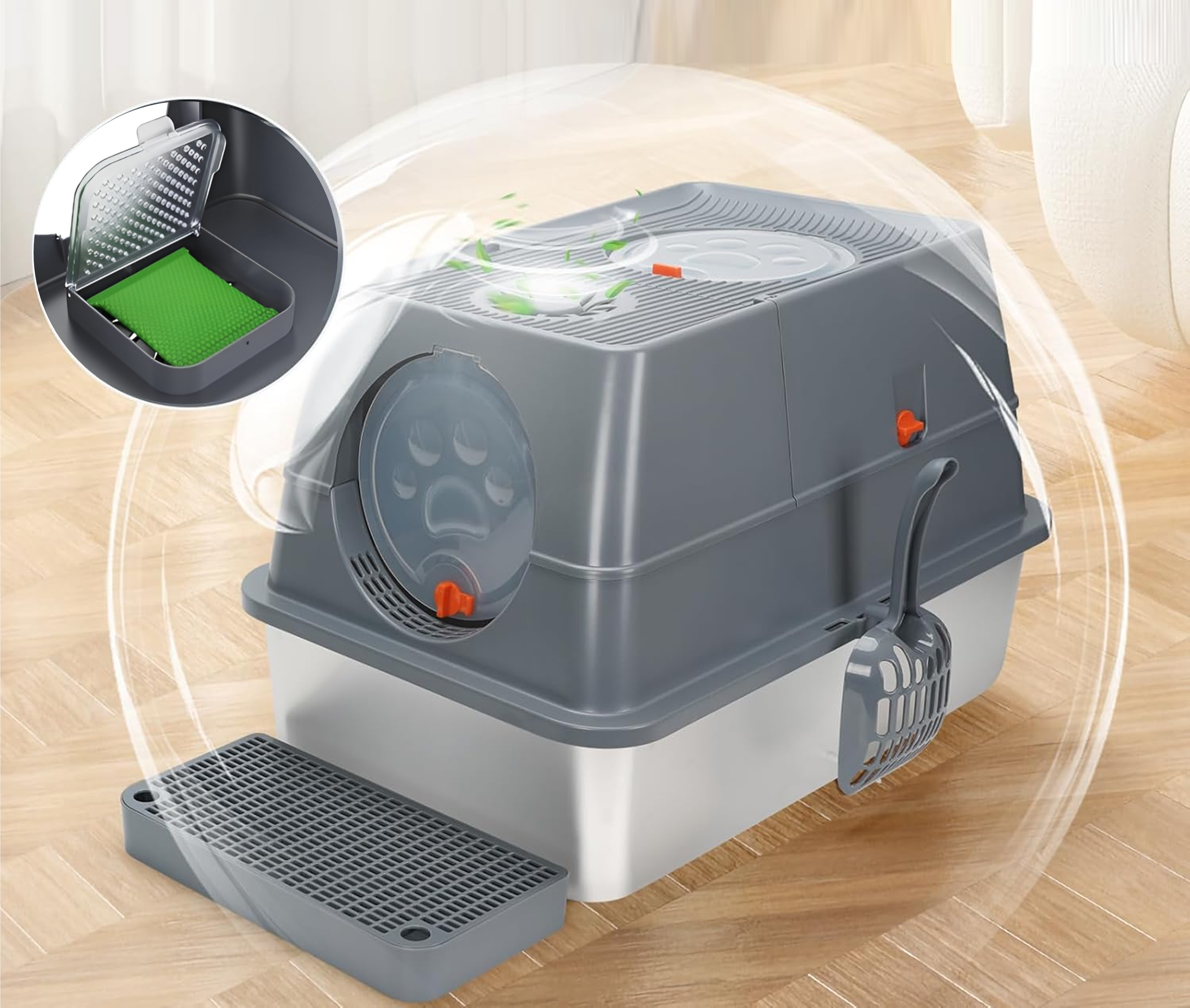 Dankzij het ingebouwde geurcompartiment met een bamboe-houtskoolzakje worden nare luchtjes effectief geabsorbeerd en verminderd. Zo blijft de kattenbak fris en ruikt jouw huis altijd aangenaam.