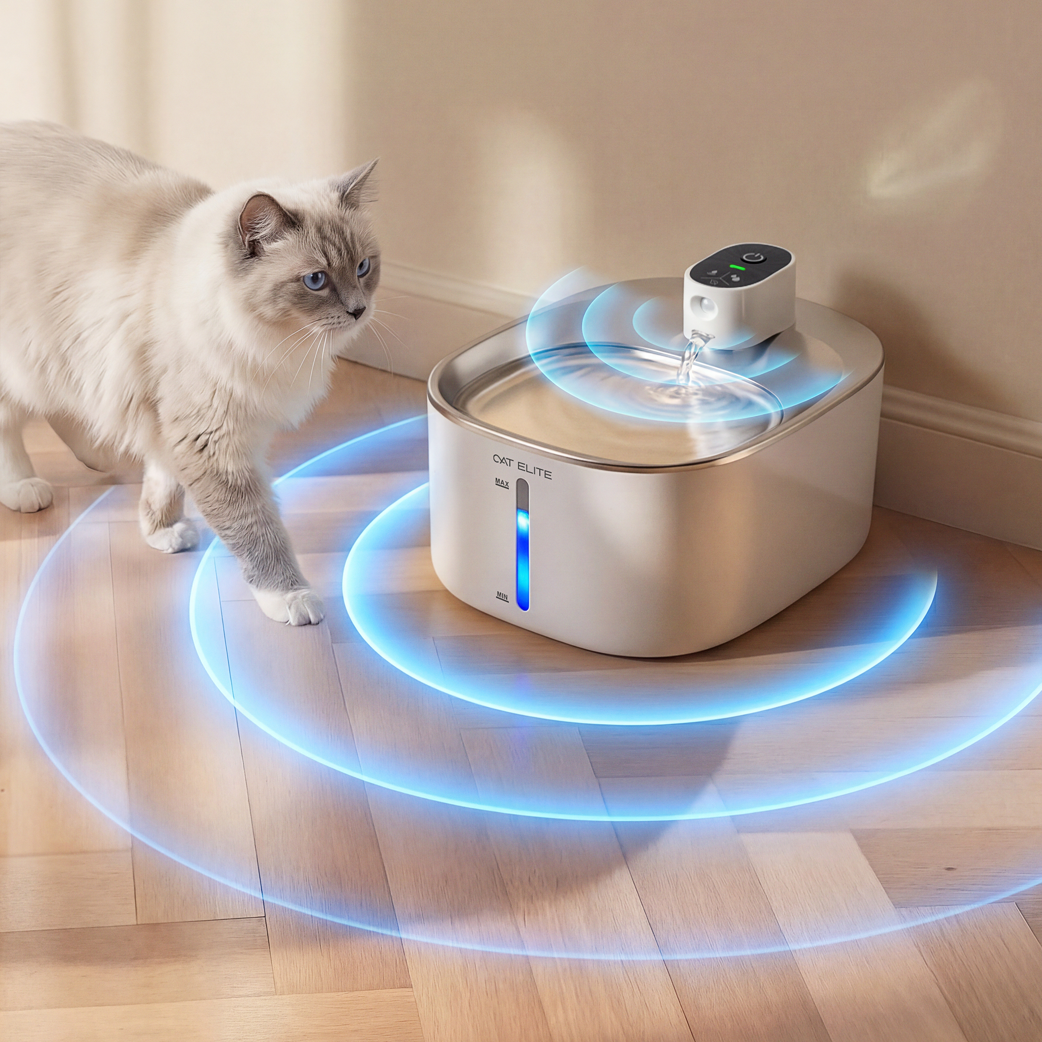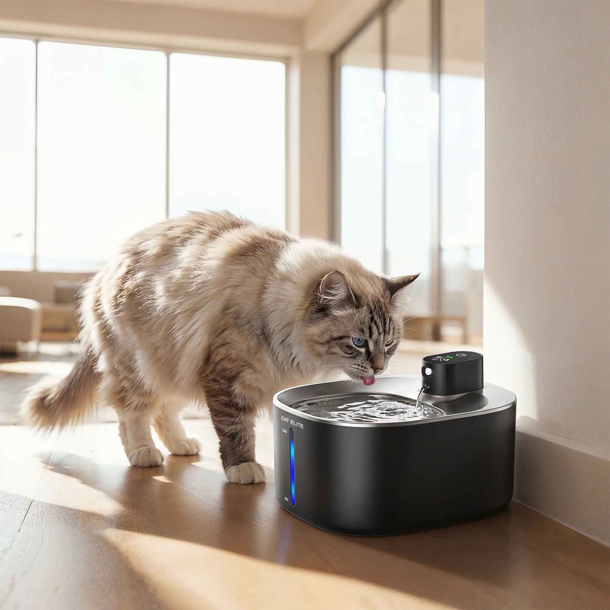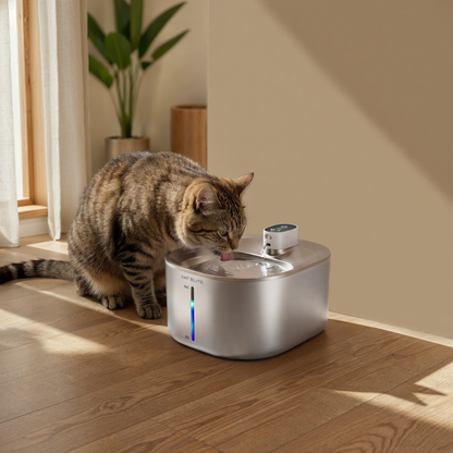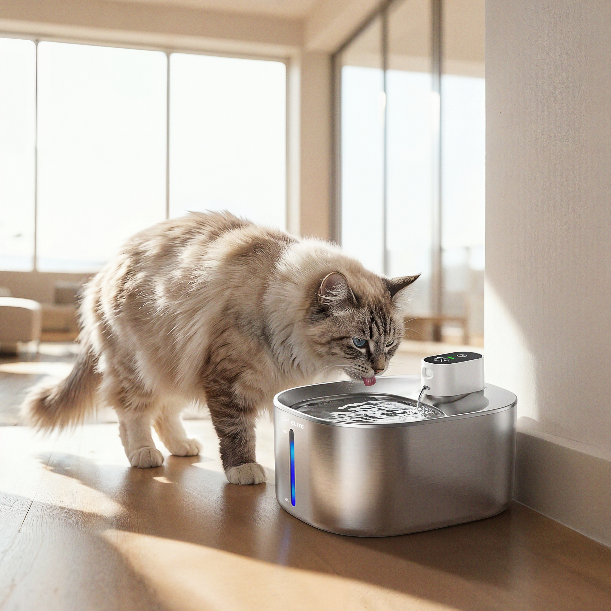 Je hoort de fontein bijna niet, zelfs in de slaapkamer. Jij hebt stilte, en je kat vers water op elk moment.
