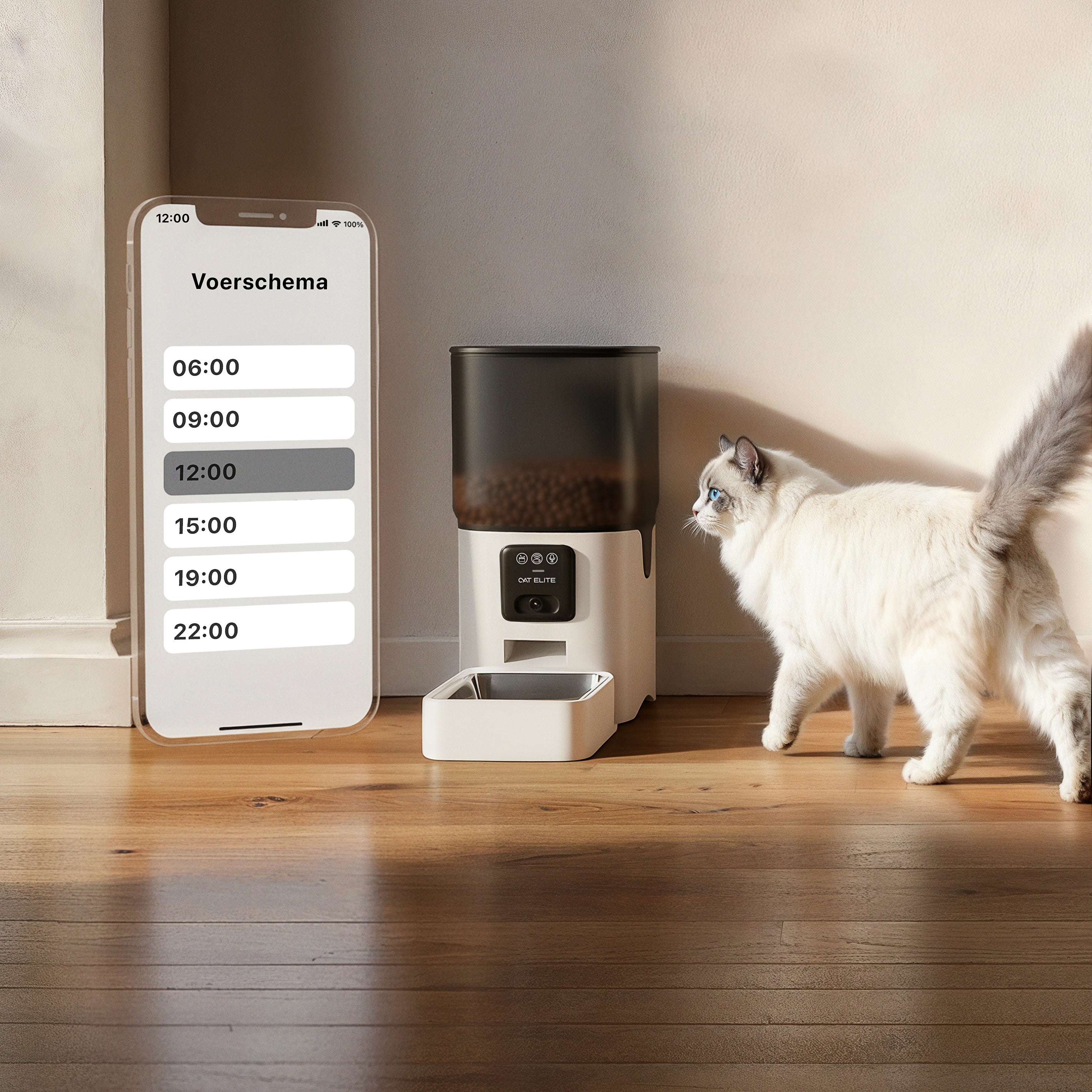 Met de app stel je porties en tijden in, krijg je meldingen zodra er gevoerd is en geef je een extra maaltijd als je later thuis bent. Zo houd jij de controle, altijd en overal.