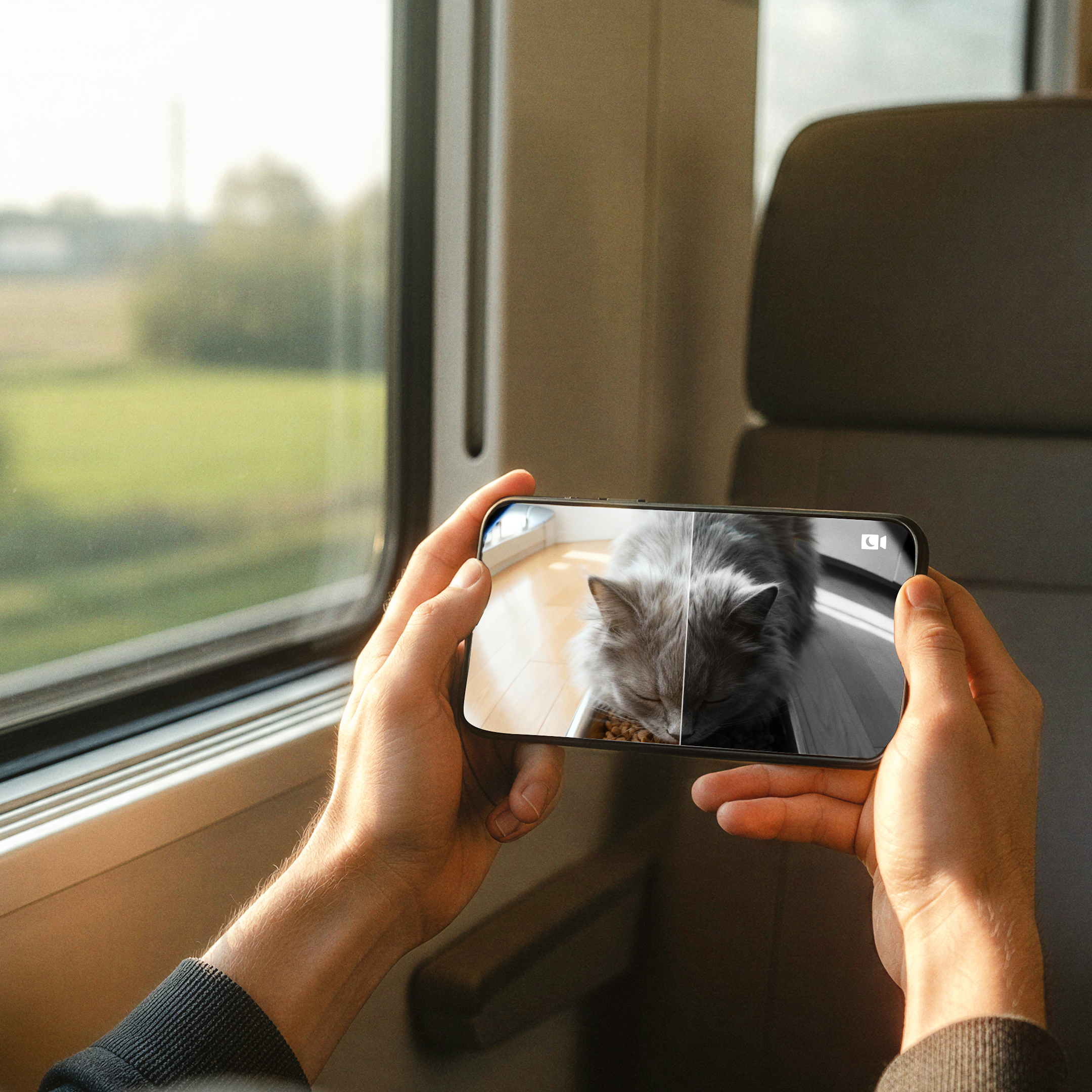 Geen tijd of gewoon even weg? Deze voerdispenser voert automatisch volgens jouw schema. Via de app kijk je mee, voer je bij en houd je contact. Jouw kat tevreden, jij gerust.