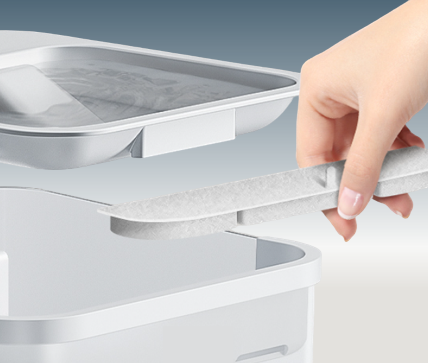 Plaats de filter met het lipje omhoog in het filtercompartiment.