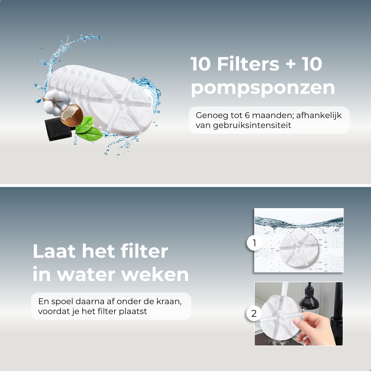 - 10x koolstof- en ionenfilters - vervangen elke 2–3 weken