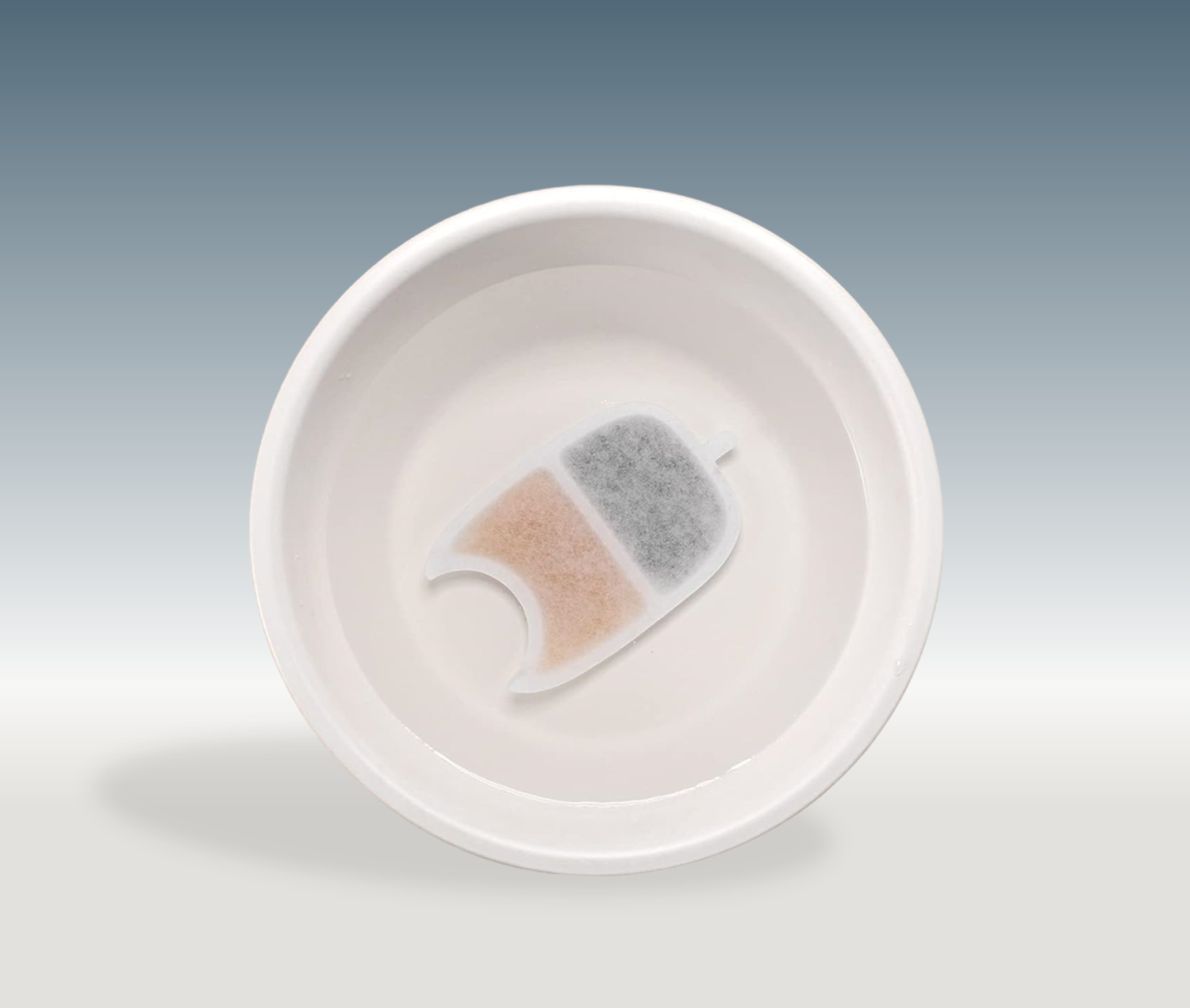 Laat eerst het filter minimaal 5 minuten weken in water, alvorens hem af te spoelen van eventuele gruisdeeltjes.