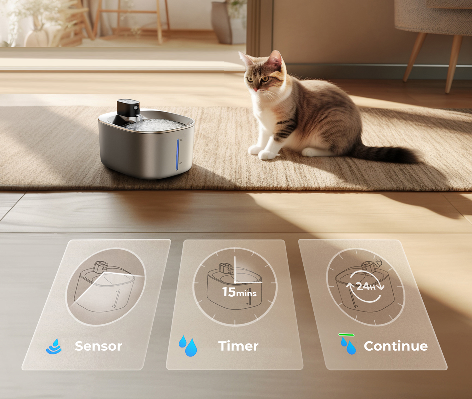 Sensor Optie: water gaat stromen zodra je kat in de buurt is