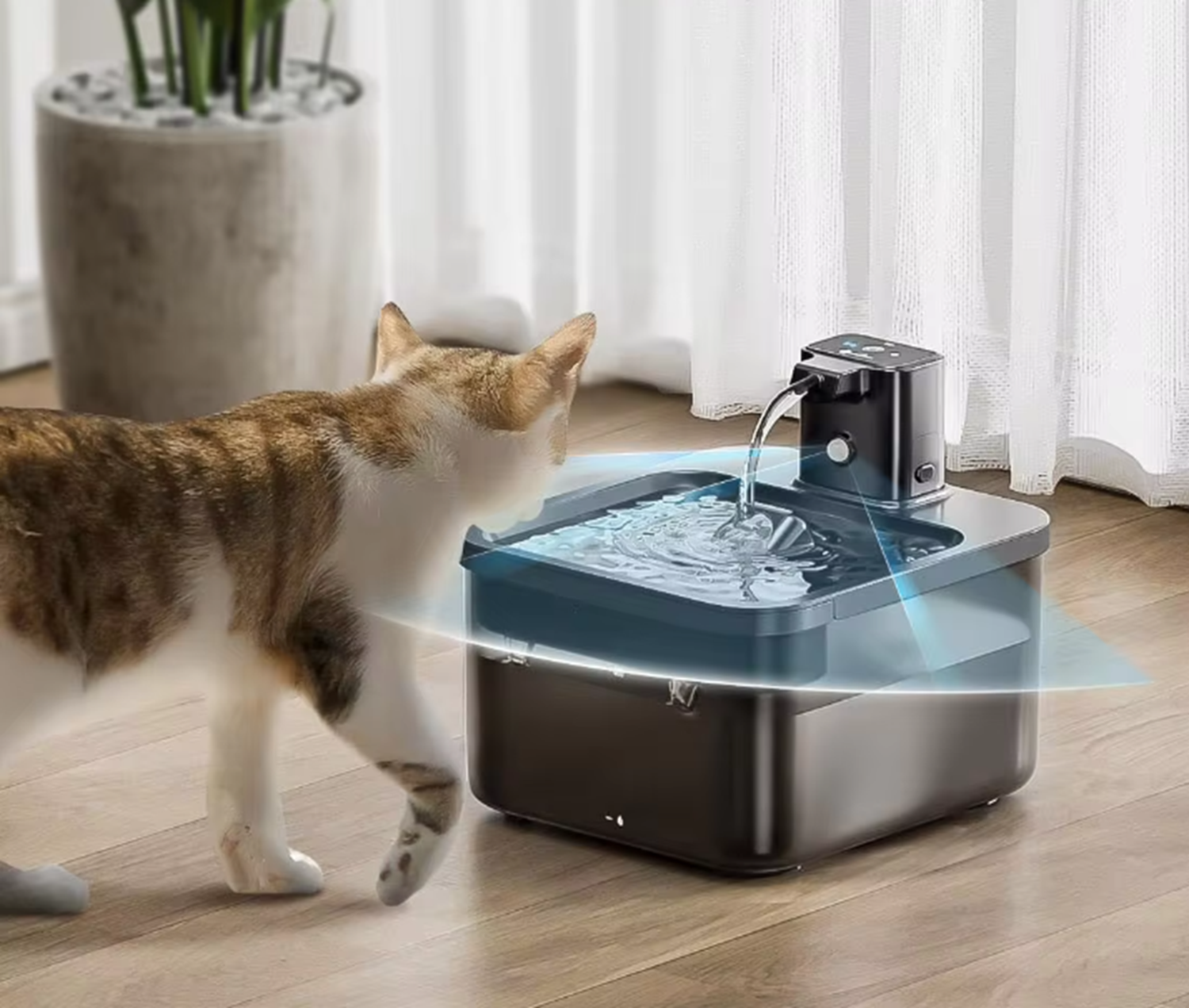 Sensor optie: het water stroomt zodra de kat in de buurt is van de drinkfontein