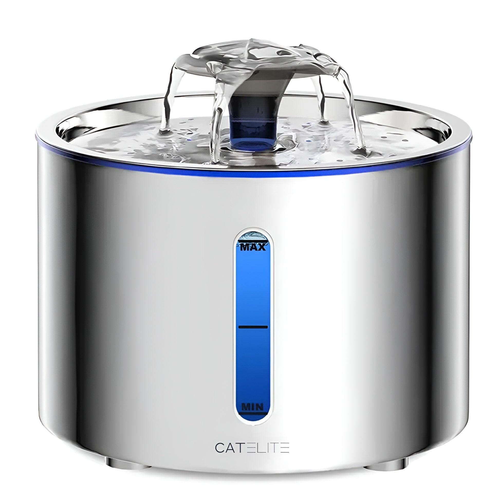 Is jouw kat kieskeurig als het om drinkwater gaat? Probeer de CatElite® RVS Drinkfontein! Met zijn stijlvolle en hygiënische ontwerp van roestvrij staal past deze fontein perfect in elk interieur. Het grote 2,5L waterreservoir en het 4-in-1 filtratiesysteem zorgen ervoor dat je kat altijd geniet van vers en zuiver water, wat bijdraagt aan een optimale gezondheid. Fluisterstil en met een handige waterpeilindicator, biedt deze drinkfontein gemak en gemoedsrust voor elke kattenliefhebber. Cheers, op een gezonde en gelukkige kat!