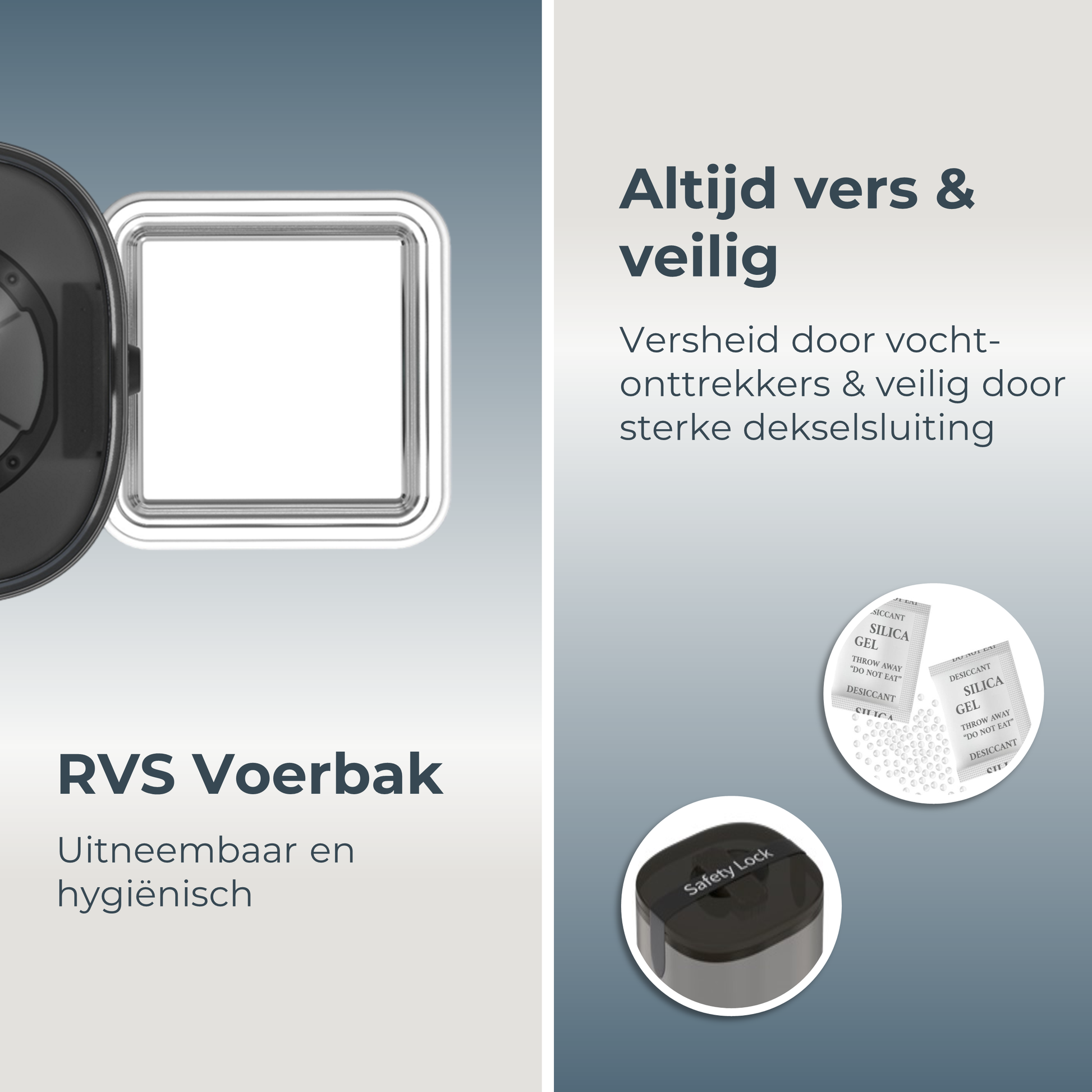 Heeft jouw kat ook een beter gevoel voor etenstijd dan jij? Probeer de CatElite® Automatische Voerbak! Deze geavanceerde voerbak is voorzien van dual WiFi, een HD-camera met night vision en een grote capaciteit van 6 liter. Met de handige app stel je eenvoudig het perfecte voerschema in en kun je live met je kat praten. De vochtonttrekker zorgt ervoor dat elke hap vers blijft en de beveiliging houdt de voerbak gesloten totdat het tijd is om te eten. Geniet van gemoedsrust en een blije kat, elke dag weer! Let op: De voerdispenser werkt op netstroom; de batterijen dienen alleen als noodoplossing bij stroomuitval.