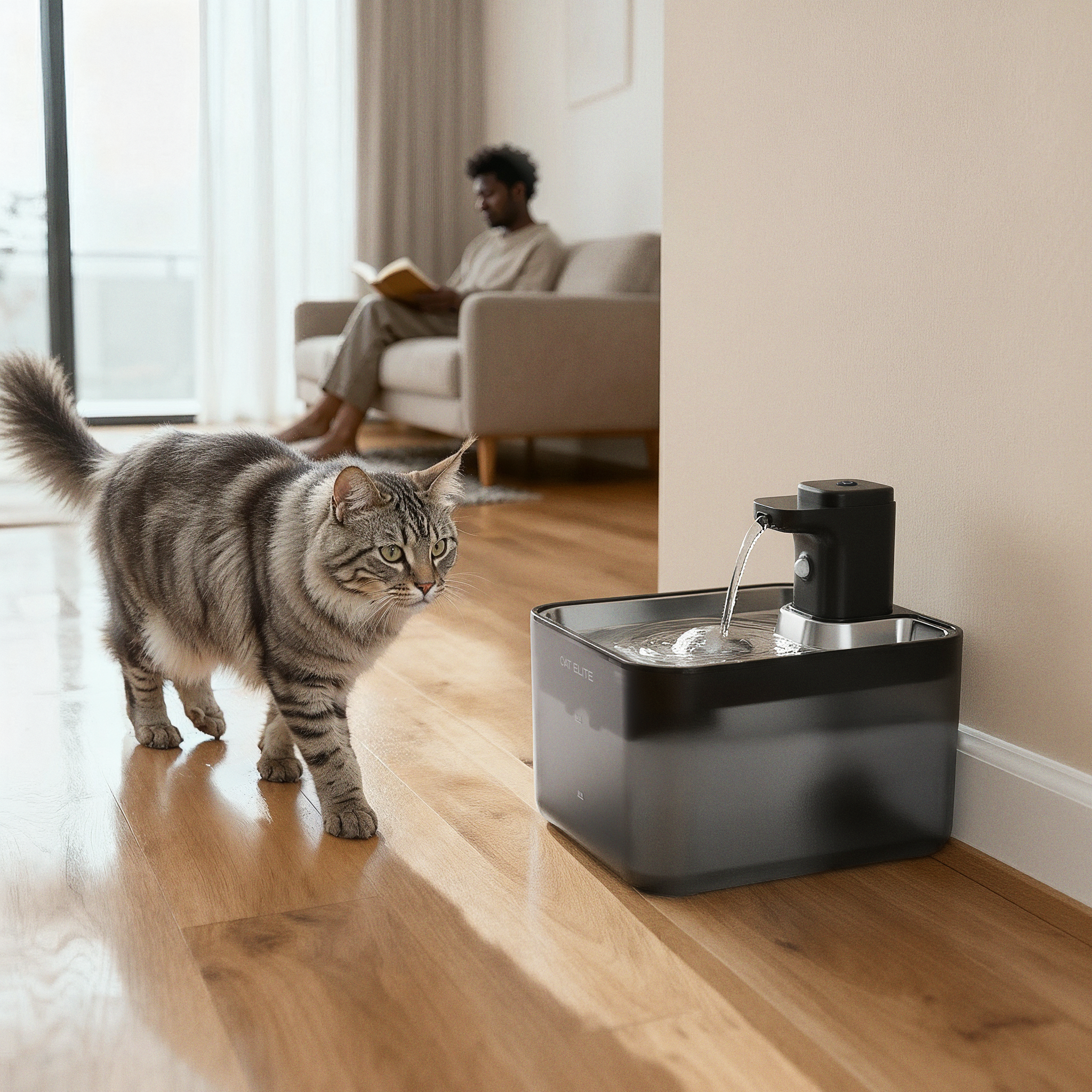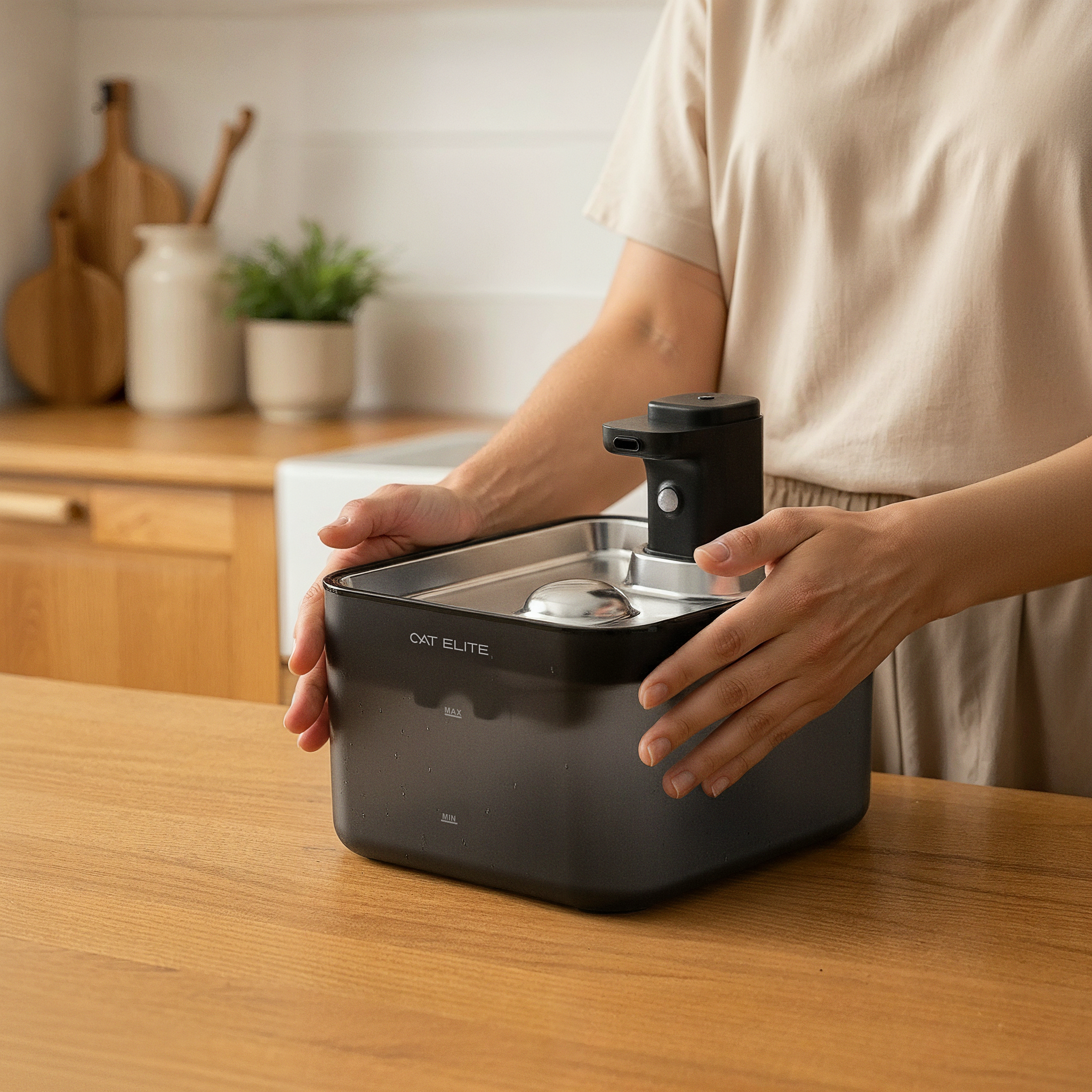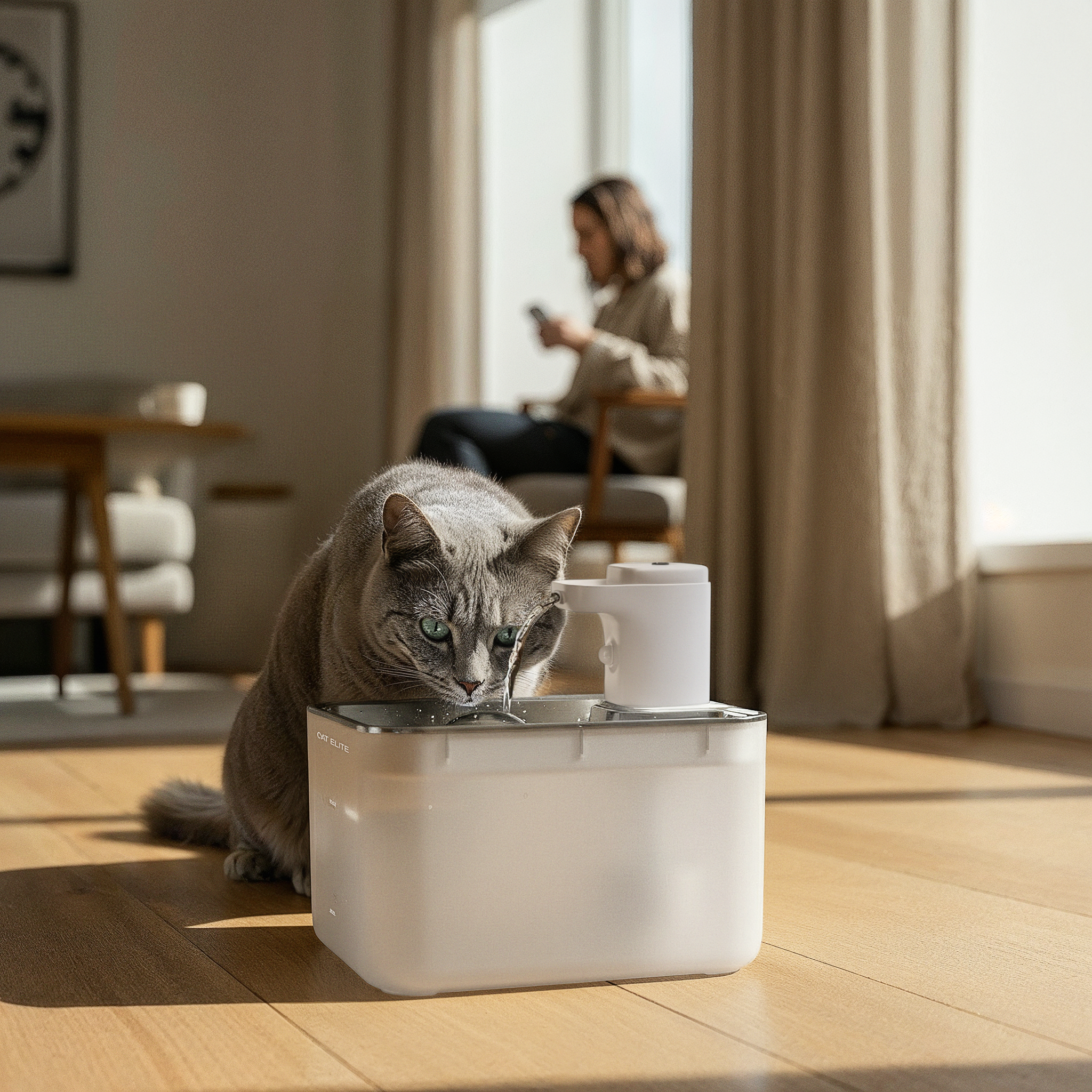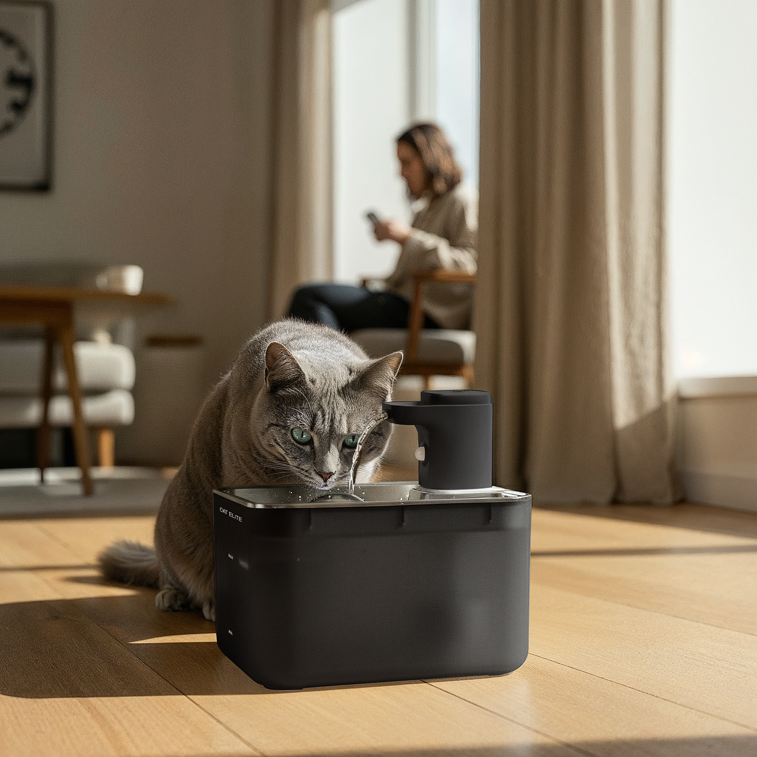 Je bent vaak onderweg of hebt je hoofd bij andere dingen. Deze draadloze fontein zorgt elke dag voor vers water, zonder kabels of gedoe. Altijd water voor je kat. Altijd rust voor jou.